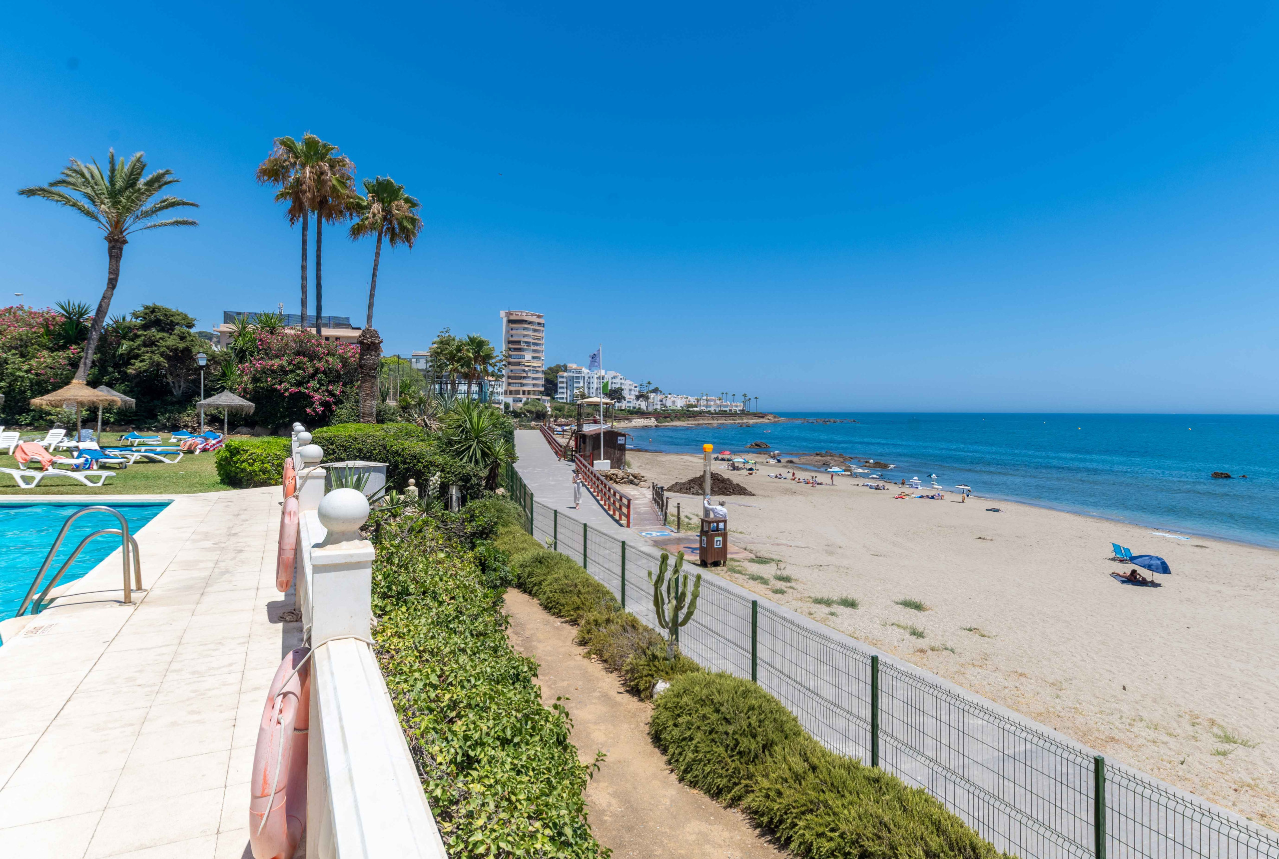 Fantastisk strandlejlighed i første række til dejlig strand 🏖️ Roligt område, smuk udsigt og dejlig strandpromenade✨ Nem gåtur til La Cala de Mijas, Calahonda og Cabopino 🛳️