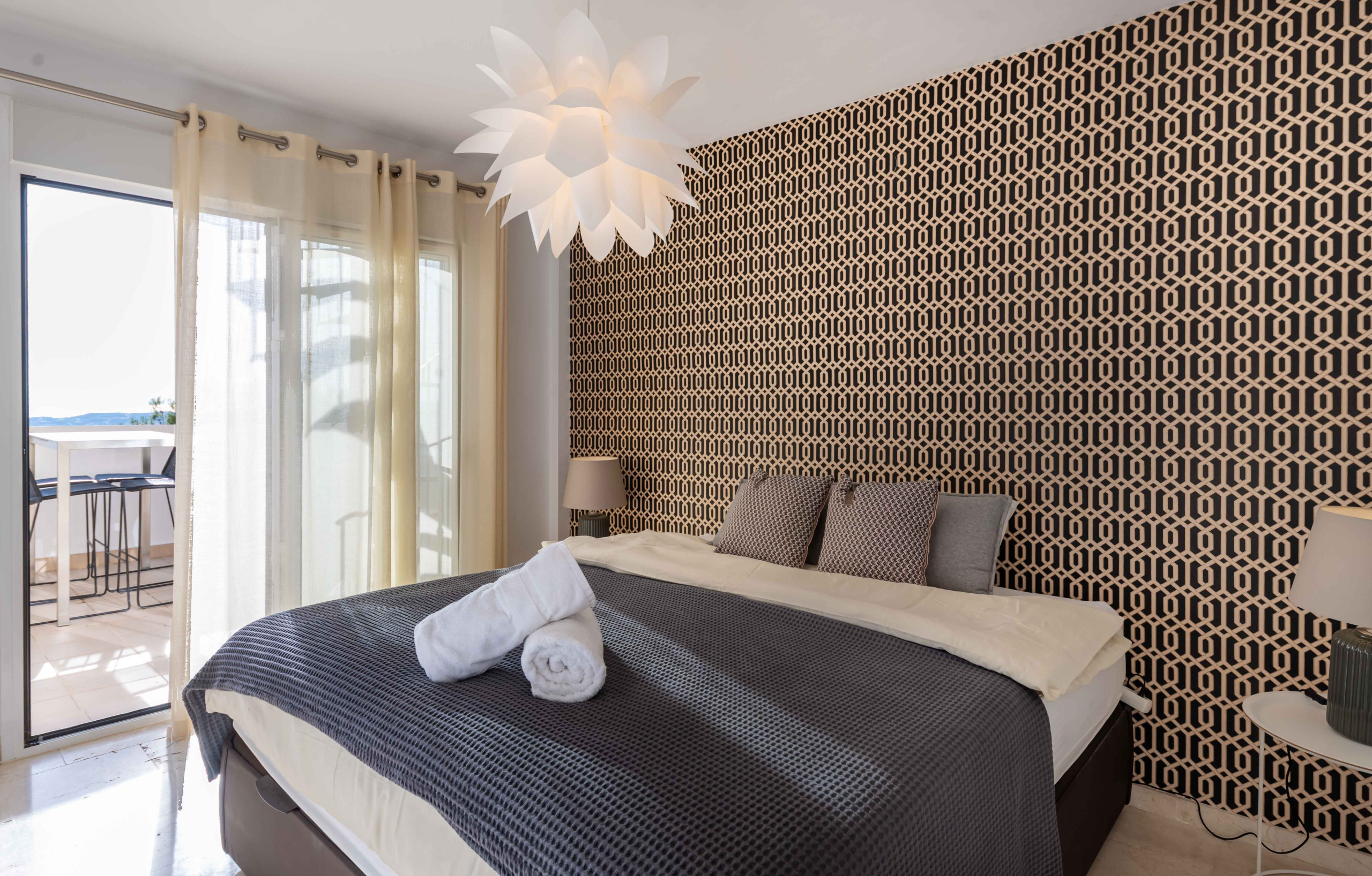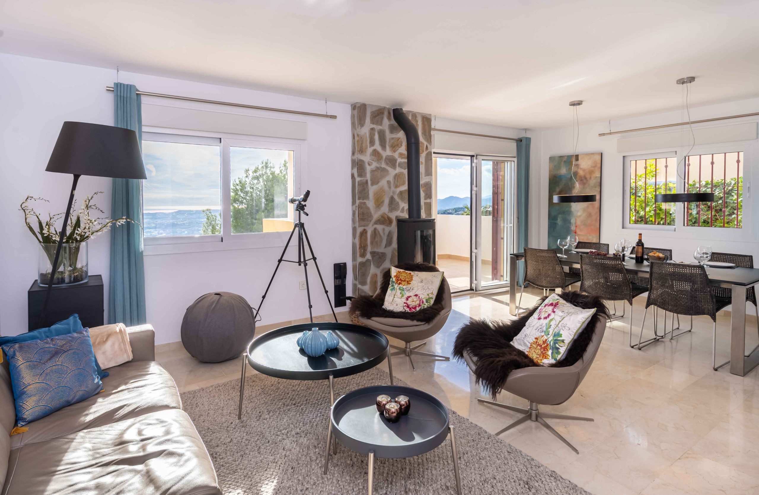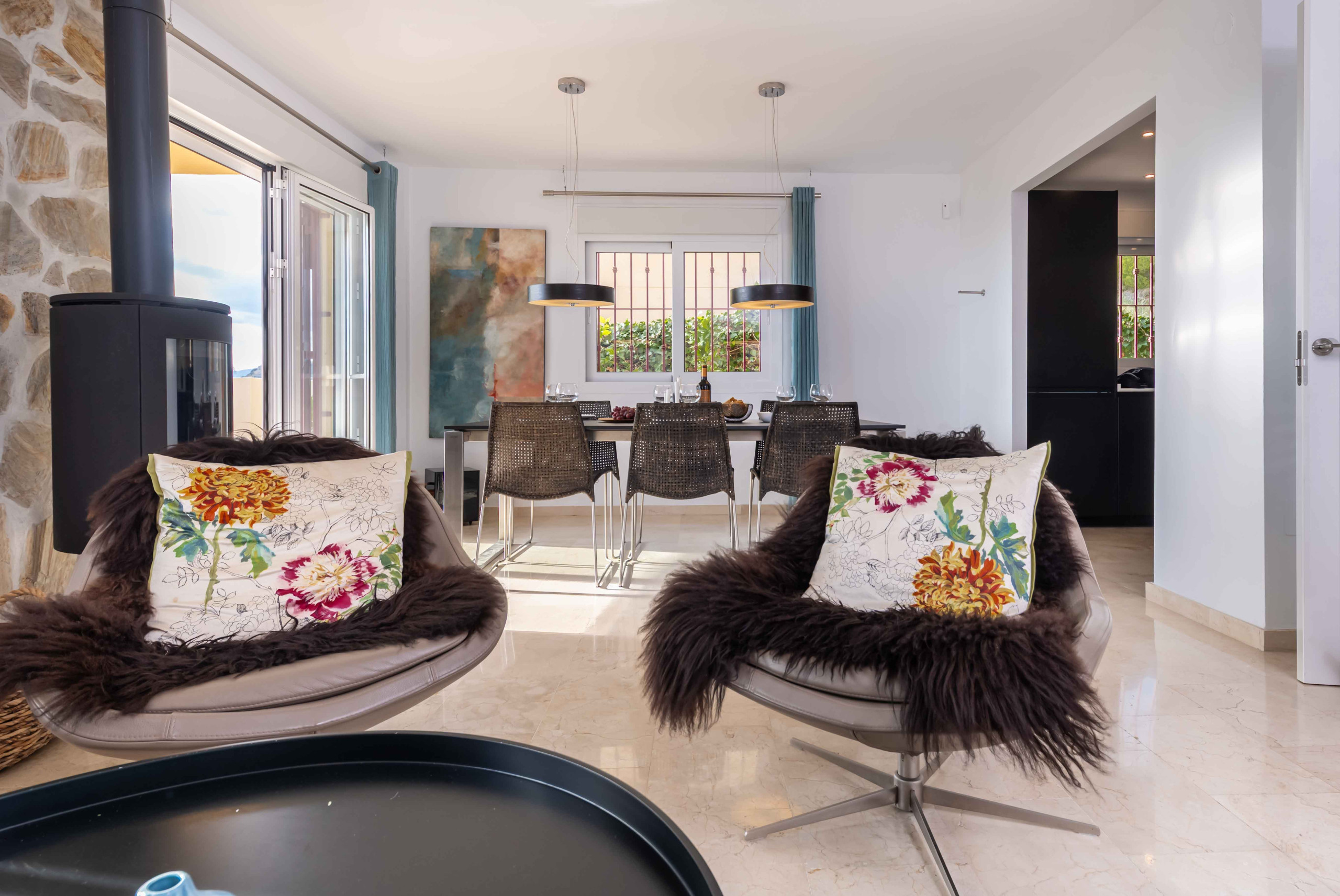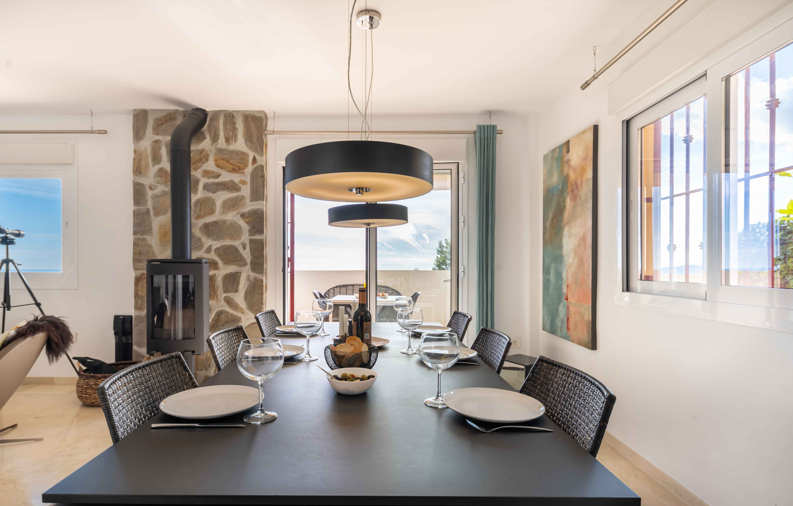La decoración es luminosa y de estilo nórdico, creando una atmósfera acogedora y relajante.