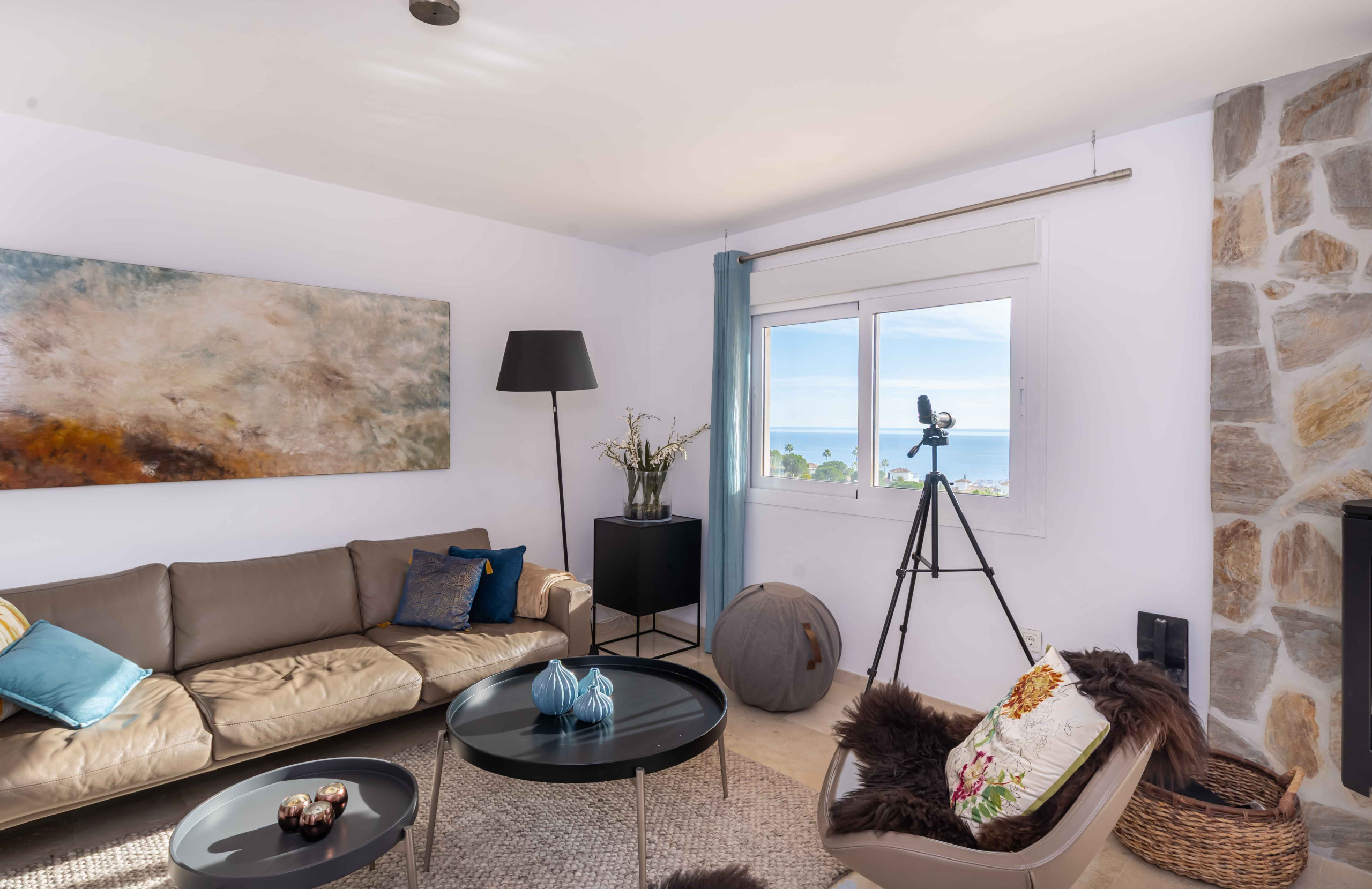 El salón es acogedor, con un nuevo sofá cama, un gran televisor y un comedor. La gran terraza en la parte trasera de la casa es el lugar perfecto para relajarte el resto del día, donde podrás disfrutar del sol y de las vistas impresionantes al mar. También encontrarás una barbacoa, zona de comedor y tumbonas para tu disfrute.