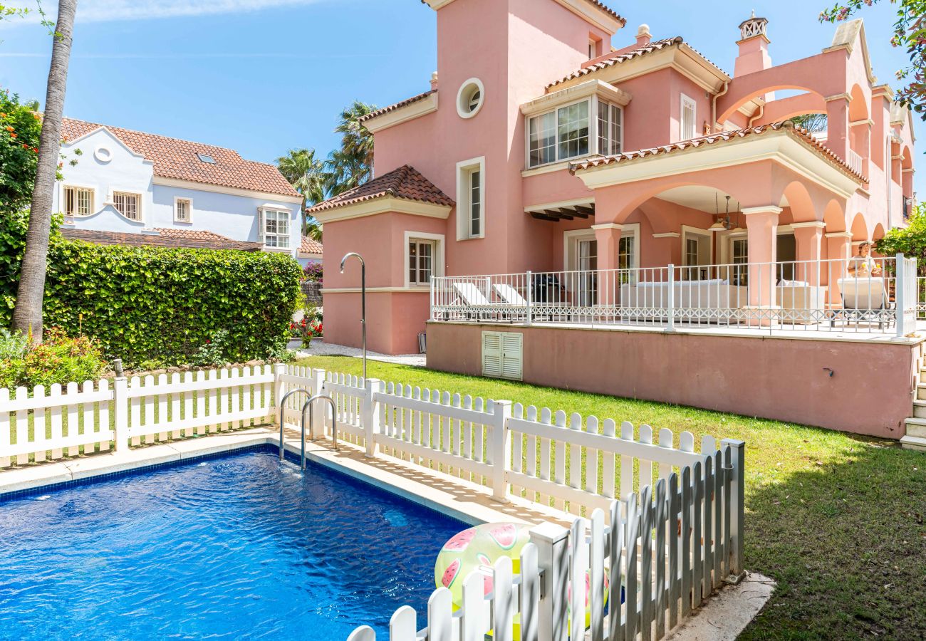 La villa en Marbella posee 6 dormitorio(s) y capacidad para 12 personas. Alojamiento de 350 m². Dispone de jardín, mobiliario jardín, parcela vallada, terraza, lavadora, secadora, barbacoa, chimenea, plancha, acceso internet (wifi), secador, balcón, zona infantil, alarma, calefacción central, aire acondicionado, piscina privada, garaje y parking en edificio cercano, Televisión. La cocina independiente, de inducción, está equipada con nevera, microondas, horno, congelador, lavavajillas, vajilla/cubertería, utensilios/cocina, cafetera, tostadora, hervidor de agua, batería de cocina, fogones.