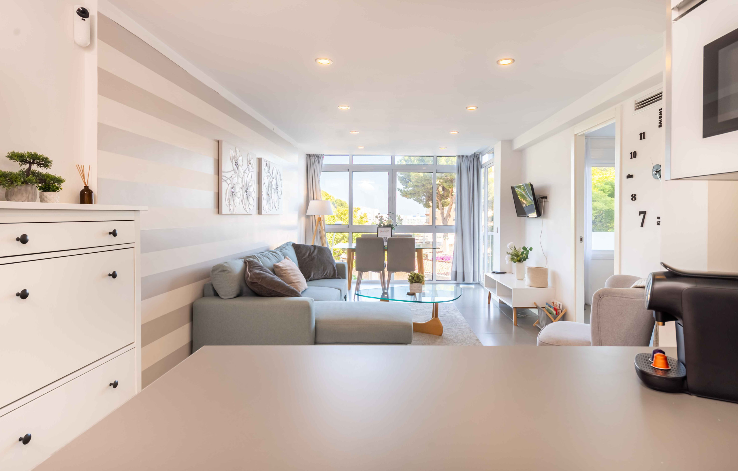 The apartment is situated in a well-maintained complex with a large, shared pool, which has a lifeguard on duty for extra safety, as well as a beautiful garden where children can play and enjoy the great weather. It’s the perfect spot for both relaxation and activities, whether you want to swim, read a book in the garden, or take a short walk to the beach.