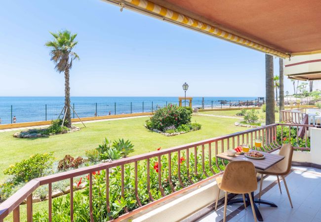 The apartment in Mijas Costa has 2 bedrooms and has capacity for 4 people. The apartment is 70 m². The accommodation is equipped with the following items: garden, fenced garden, terrace, washing machine, iron, internet (Wi-Fi), hair dryer, central heating, air-conditioned, communal swimming pool, open-air parking near the building, 1 TV. In the open plan kitchen, refrigerator, microwave, oven, freezer, dishwasher, dishes/cutlery, kitchen utensils, coffee machine, toaster, kettle and kitchenware are provided.