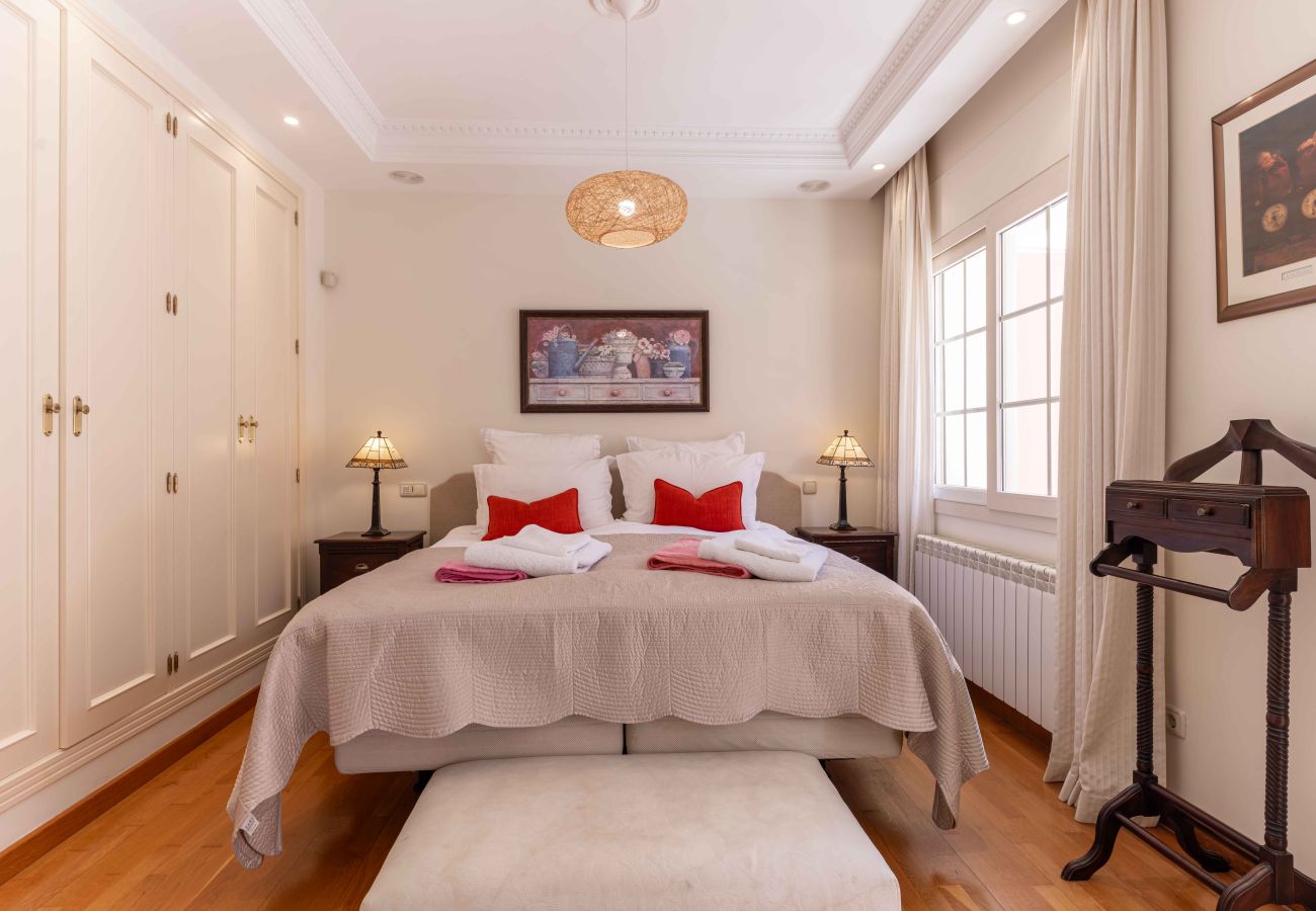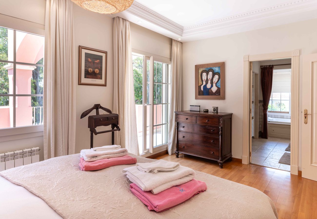 The villa in Marbella has 6 bedrooms and has capacity for 12 people. The villa is 350 m². The accommodation is equipped with the following items: garden, garden furniture, fenced garden, terrace, washing machine, dryer, barbecue, fireplace, iron, internet (Wi-Fi), hair dryer, balcony, childrens area, alarm, central heating, air-conditioned, private swimming pool, garage and car park near the building, TV. In the induction independent kitchen, refrigerator, microwave, oven, freezer, dishwasher, dishes/cutlery, kitchen utensils, coffee machine, toaster, kettle, kitchenware, hob are provided.